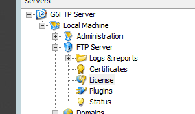 2) Start the G6FTP Server Administrator, add your license, and stop the server.
